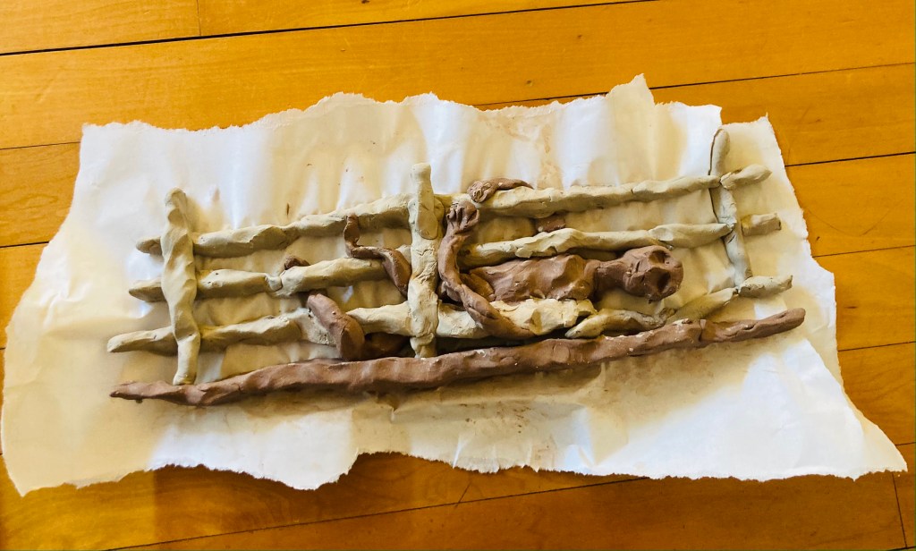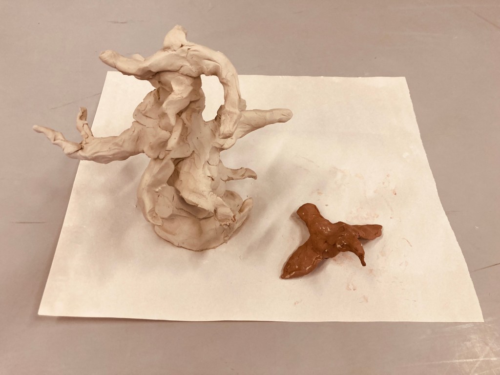 When the bell rang, I stood on the banks of it all: I found my journal and wrote the phrases alive in my heart while scribbling images from the inside out. I grabbed a large piece of white paper and drew sweeping movement with markers and crayons and oil pastels, filling the spaces in between with tiny black ballpoint words to remember (and/or to forget). I cut up strips of notepaper and rolled the pieces into tiny little balls and blew them towards each other and then away. I manically pulled and twisted clay into shapes that just minutes before had been inhabited or felt or seen.