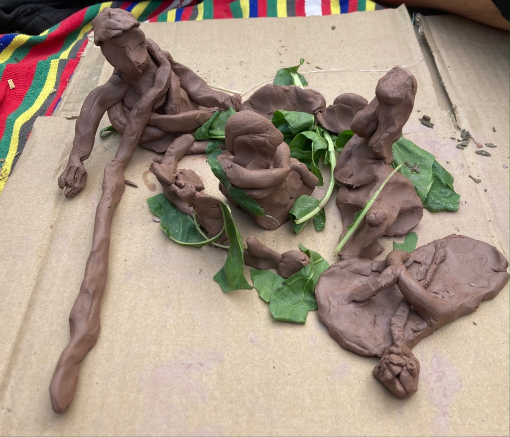 When the bell rang again, I (we) gathered up what had been moved and witnessed and created in our individual & collective stream. I (we) wove all of our grasses and shells and stones together into the finest of riparian tapestries, made of momentary color and heart, gestures and sound. Lifting it up, we celebrated, then let it dissolve into the air that we breathed. I smashed the clay back into its source, recycled the paper, swept the movements up into a dust bin and discarded them whole. There was no need to hold onto any of it; there was an endless supply of this kind of thread.